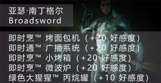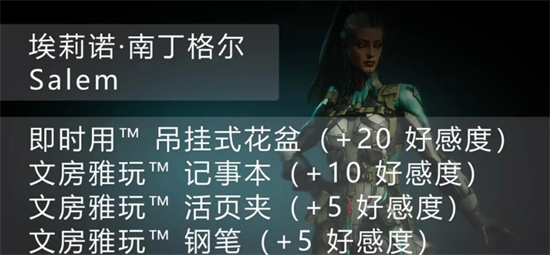 接下来那自然就是很重点的送礼攻略,每一个成员的喜好一定要明确。亚瑟南丁格尔喜欢各类的厨具,例如烤面包机,微波炉,还有小烤箱。这些都可以获得20个好感度。埃莉诺则比较喜欢一些文艺的东西,例如挂式花盆就可以获得20个好感度,文房雅玩记事本可以获得10个好感度。来来西亚主要是咖啡爱好者,送咖啡机可以获得20个好感度,送医疗包可以获得10个好感度。阿米尔会沉迷于电子娱乐,可以通过赠送无线耳机,还有曲棍球台获得20个好感度。如果送游戏显示器,可以获得10个好感度。