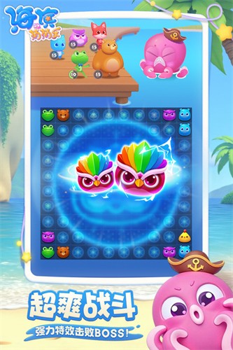 强力推出6种新鲜玩法,每种关卡类型都有小动物们的陪伴哦,精心设计的120关,给您带来清新丰富的体验,更有全新特效效果,消除轻松又爽快。呆萌可爱的小浣熊变身船长,带领小伙伴们畅游海滨,调皮的小鱼、Q弹的软糖、易碎的蜂蜜罐、会跑的玫瑰花、愤怒的小海星、美丽的瓶中蝶……旅途中有更多惊喜等你发现!